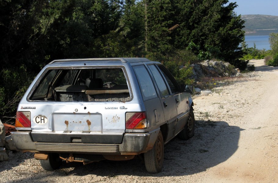 9 Uhr – Wir befinden uns nun alle auf der Barbinja und alle haben eine Arbeit gefasst. Das Mädchen schaut zu den Kindern, meine Partnerin arbeitet an der neuen Zisterne beim Haus weiter (innen verputzen), die Leiterin macht die Ziegen (melken und danach nach draussen an Stellen mit viel Gras und Kräutern an Steine binden), ein Bekannter von ihr arbeitet im Garten (pflanzen, jäten, säen, giessen) und der Schreiner-Zivi, der Junge und ich suchen Futter für die Ziegen für die kommende Woche. Die neue Zisterne wird für mehr frisches Trinkwasser auf der Barbinja gebaut, denn im Sommer ist es immer sehr heiss und die bereits vorhandenen Zisternen genügen kaum den Anforderungen. Für das Futter für die Ziegen fahren wir mit einem uralten Mitsubishi auf der Insel herum und schneiden Üste von den Büschen der hier überall wuchernden Makija (Dschungel, der aus Büschen und Sträuchern besteht). Der Mitsubishi sieht schon ziemlich schrottreif aus, tönt und riecht auch dementsprechend, aber für die Belange auf der Insel genügt er noch vollends. Er lässt sich übrigens mit einem einfachen Küchenmesser ein- und ausschalten. Mitfahren darf man auch im Rahmen der Heckscheibe, die nicht mehr vorhanden ist oder auf der Kühlerhaube. Mit der Kiste zu fahren ist jeweils ein lustiges, manchmal auch abenteuerliches Erlebnis.