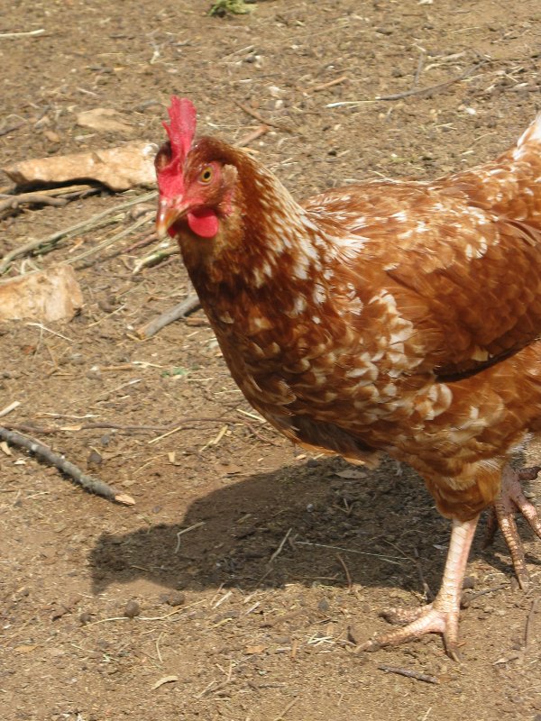 Die siebzehn Kücken werden schnell grösser. Momentan leben sie noch in einem kleinen und flachen Gehege, in welchem sie mit wildem Geflatter kleine Kämpfe um die ausgestreuten Maiskörnern machen. Schon bald werden wohl einige Hähnchen aussortiert und geschlachtet, später sollen die Hühner (und ein Hahn) zu den Ziegen ins Gehege kommen.
